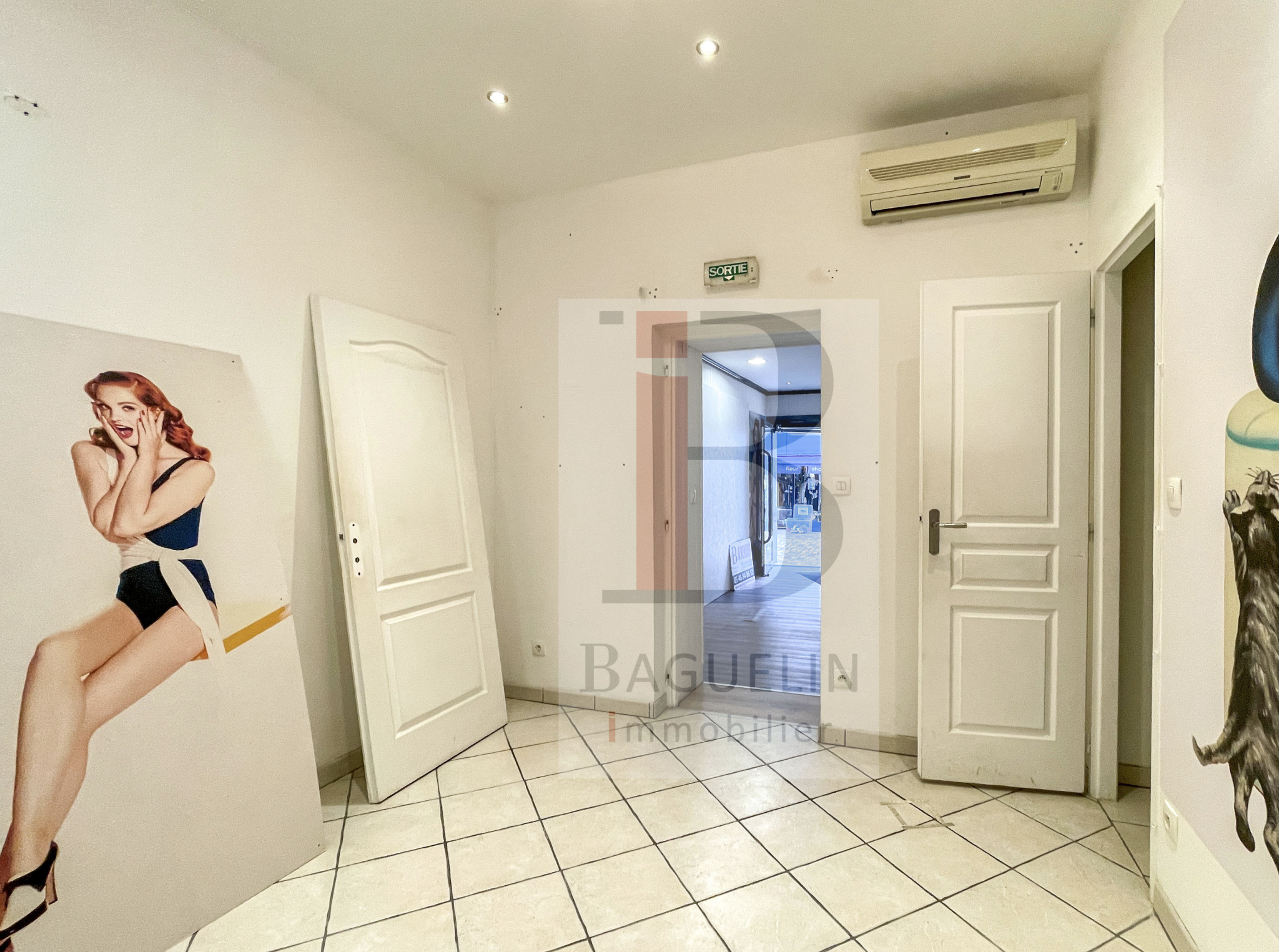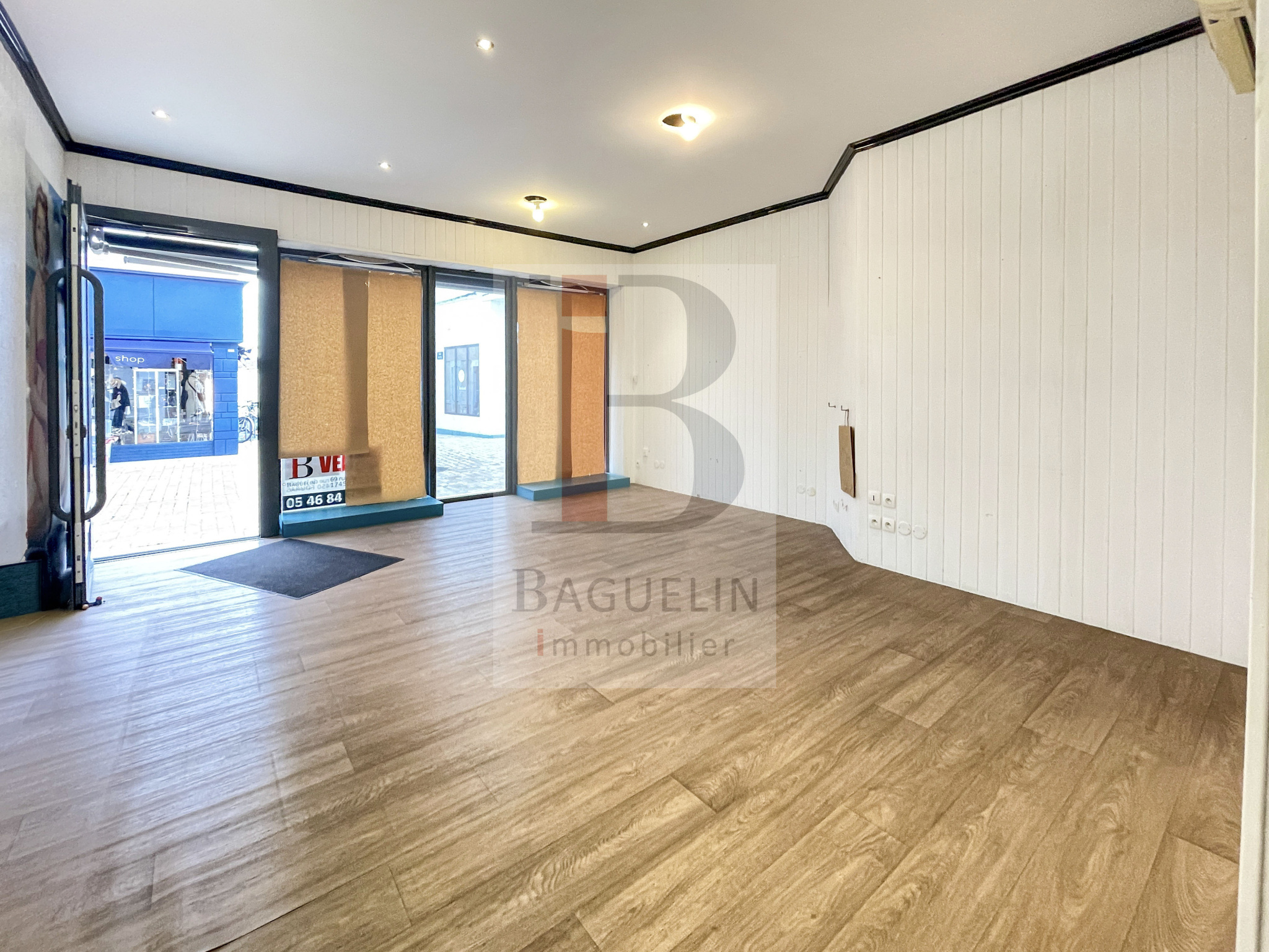 À louer local commercial comprenant 2 bureaux ou surfaces de vente, 1 réserve et un WC avec lave-mains pour une surface de 43,46 m2.