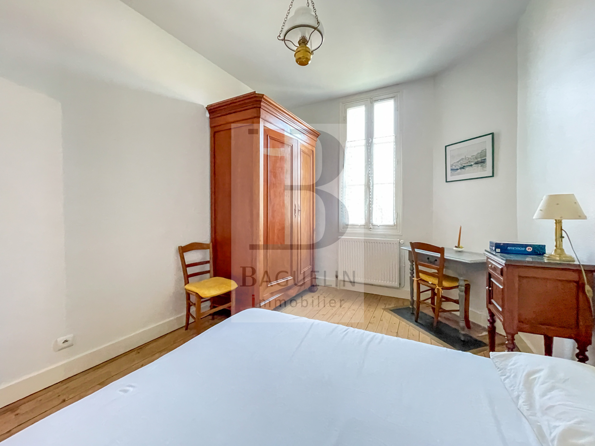 – À l’étage : deux chambres, un dégagement, WC séparés.