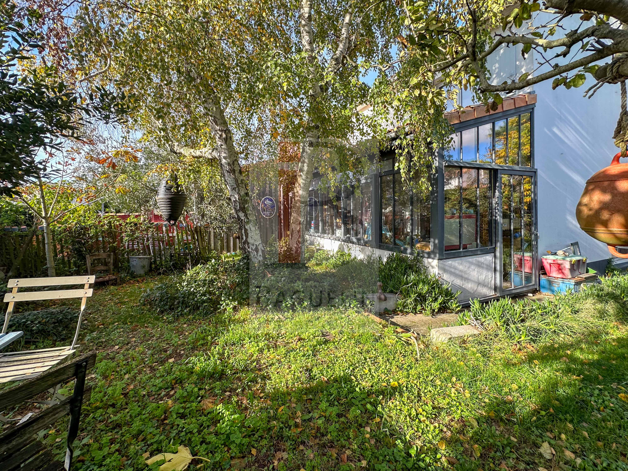 L’ensemble immobilier sur un jardin clos et arboré.