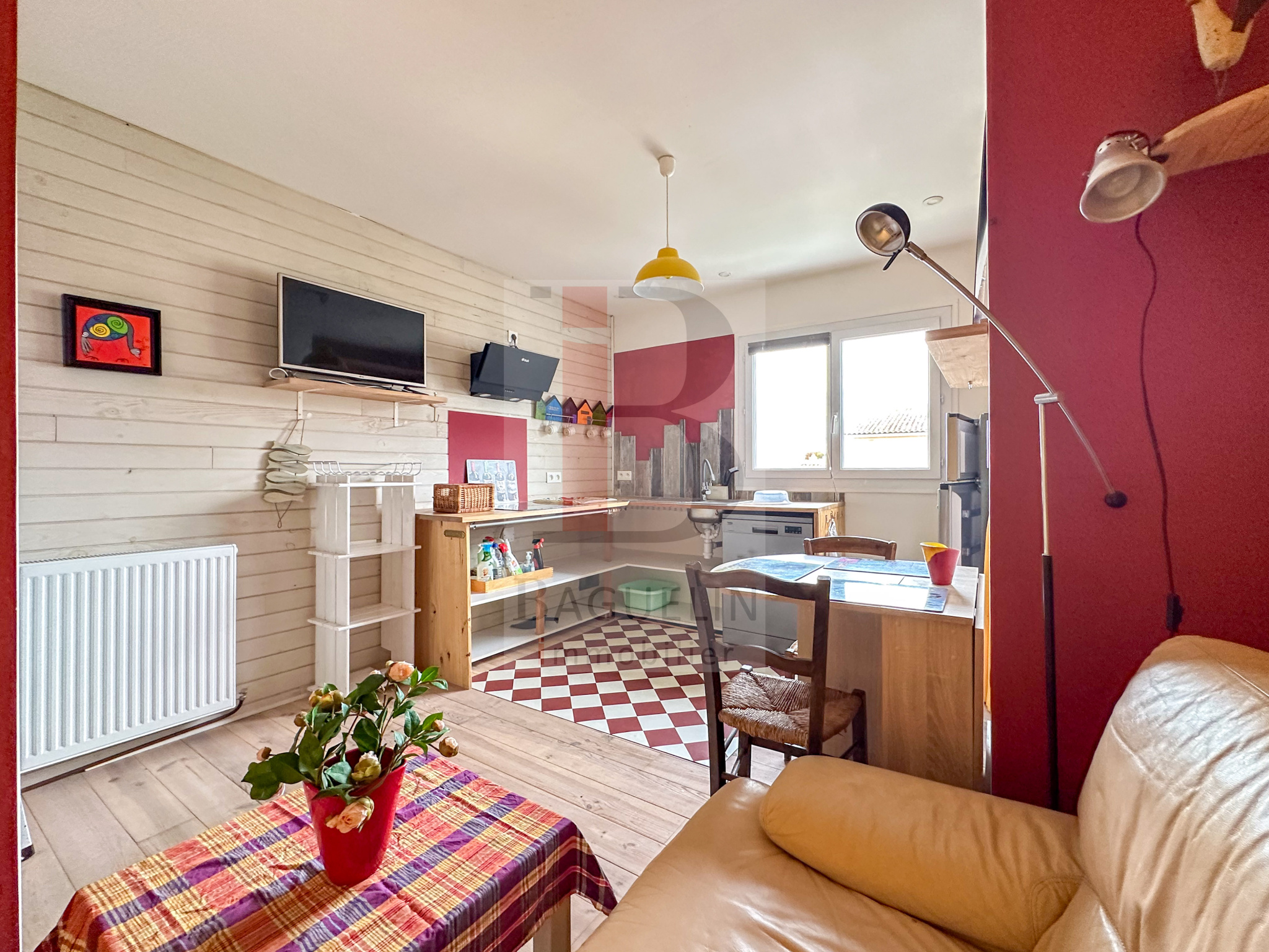Habitation attenante comprenant au rez-de-chaussée : Entrée / dégagement, pièce de vie avec cuisine ouverte aménagée, Salle d’eau avec Wc. A l’étage: Grande chambre et couchage supplémentaire en mezzanine.
