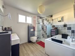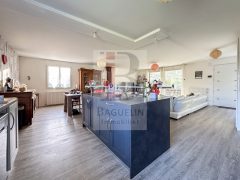 Une grande pièce de vie de 57m2 avec cuisine ouverte aménagée et équipée, une véranda, 3 chambres dont deux avec placards, bureau ou 4ème chambre, une salle d’eau, une salle de bains, 2 WC, .
