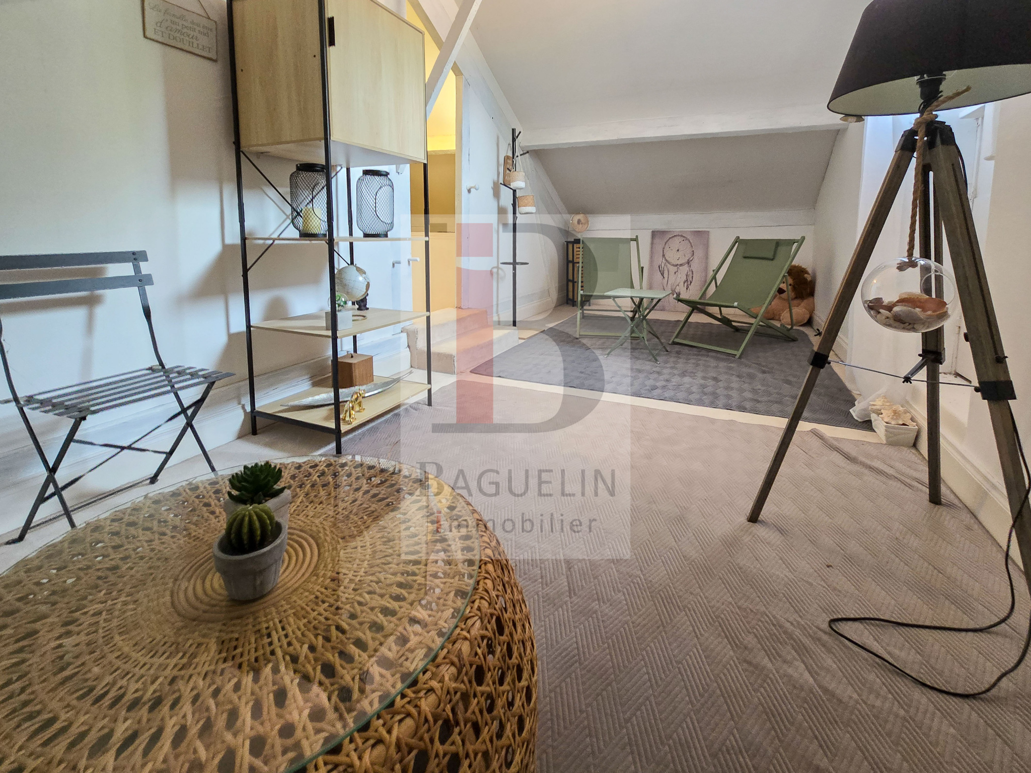 Au 2ème étage mansardé: chambre avec salle d’eau.