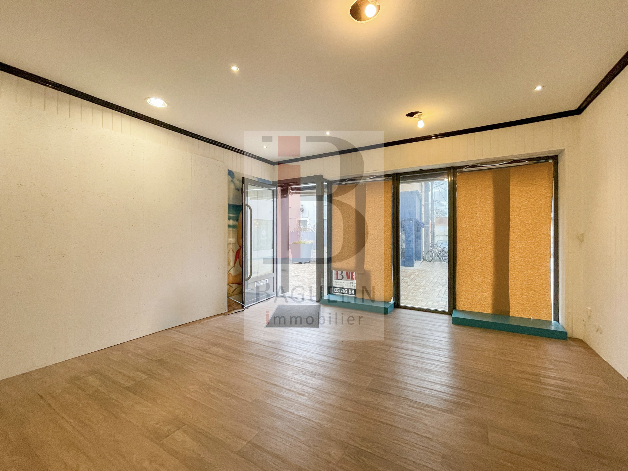 À louer local commercial comprenant 2 bureaux ou surfaces de vente, 1 réserve et un WC avec lave-mains pour une surface de 43,46 m2.